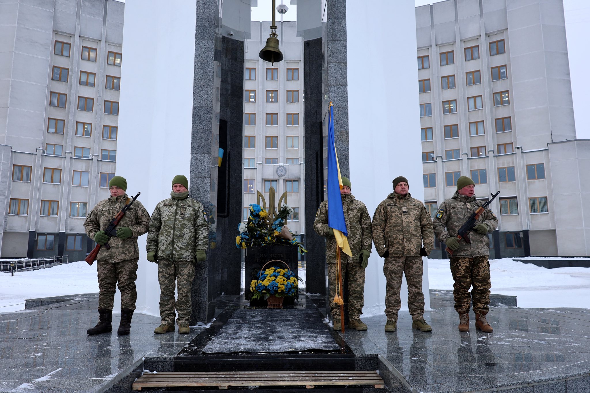З Днем Соборності України. Т.в.о. голови Волинської ОВА Роман Романюк разом із головою Волинської обласної ради Григорієм Недопадом та Луцьким міським головою Ігорем Поліщуком вшанували пам’ять тих, хто віддав життя за свободу й незалежність України.