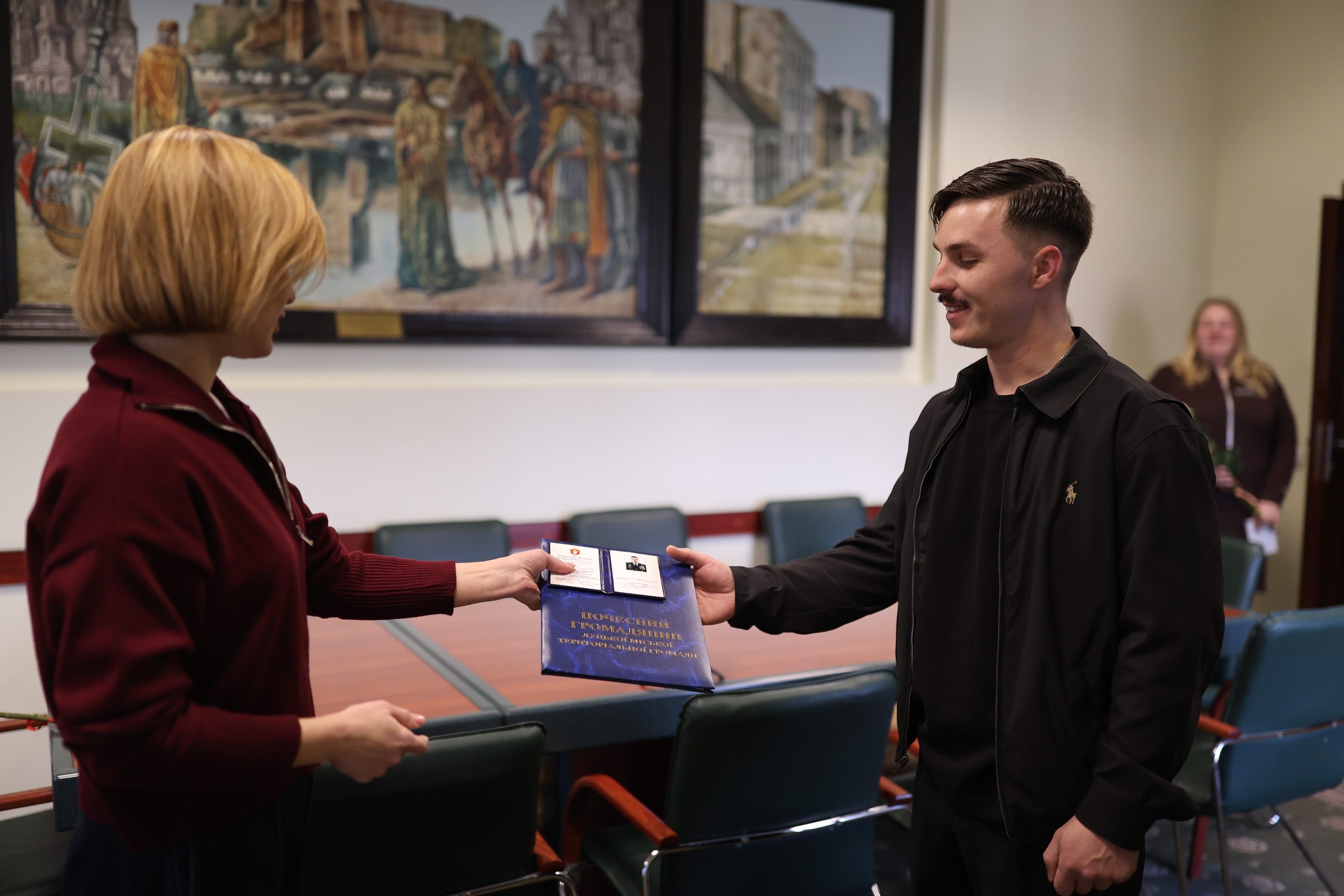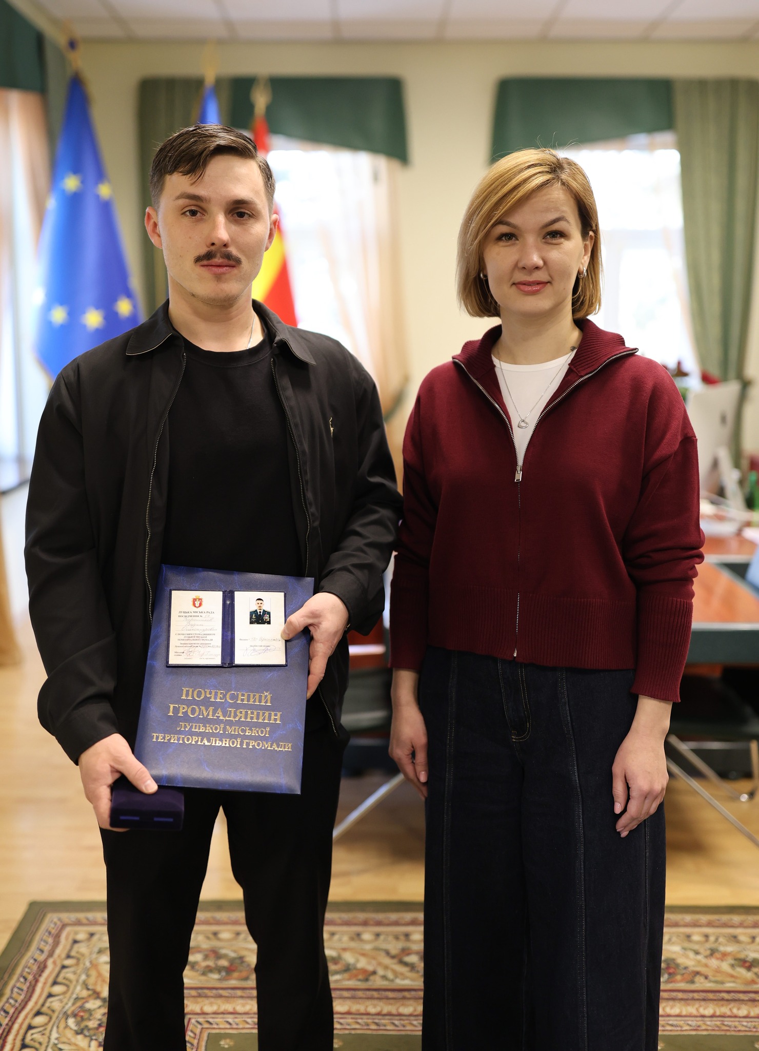 Секретар Луцької міської ради Катерина Шкльода вручила відзнаку “Почесний громадянин міста Луцька” Герою України, підполковнику, військовослужбовцю, льотчику 2-го класу Повітряних сил Збройних сил України Вадиму Олександровичу Ворошилову.