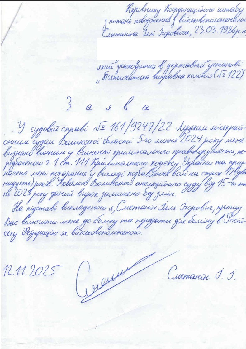 Лучанин Ілля Сметанін, якого засудили за держзраду та наведення російських ракет на Луцький військовий аеродром, хоче, аби його передали на росію в рамках обміну.