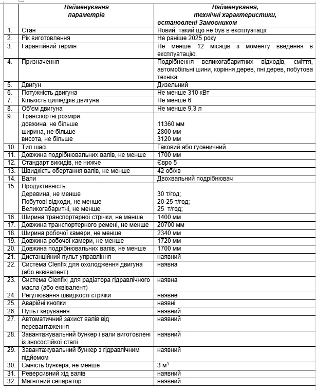Серед вимог - учасник повинен мати документально підтверджений досвід виконання не менше ніж одного аналогічного договору. А ще - низка чітких вимог до технічних характеристик: