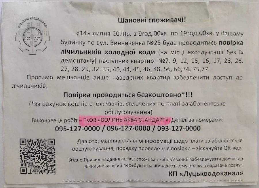 Ще у 2020 році журналісти детально описали, як комунальне підприємство «Луцькводоканал» доплюсовує в кожну платіжку лучан витрати на повірку лічильників приватними фірмами, яких обирає самотужки.