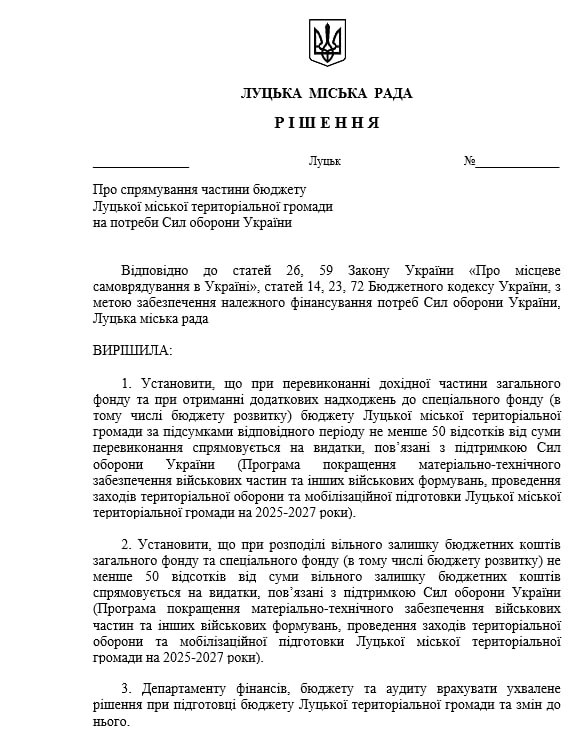 Депутат Луцької міської ради Андрій Лучик наголошує, що від перевиконання бюджету мінімум 50% має йти на забезпечення Сил оборони України.