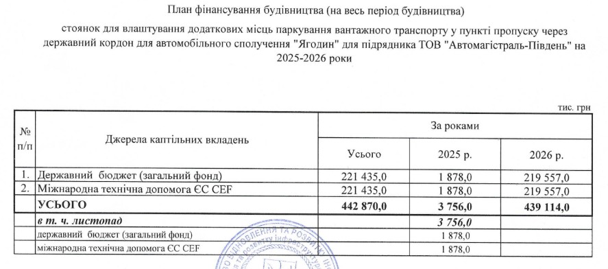 Переможцем закупівлі визнали компанію «Автомагістраль-Південь», водночас зобов’язавши її усунути невідповідності у документах. Йшлося, наприклад, про підтвердження наявності техніки, узгодження даних про працівників. Врешті договір підписали 24 жовтня. Щоправда, і до нього довелося вносити зміни, адже Держаудитслужба знайшла порушення у плані фінансування робіт. Цей документ (вже відкоригований) передбачає виділення майже 3,8 мільйона гривень до кінця 2025 року й 439 мільйонів гривень – у 2026-му.