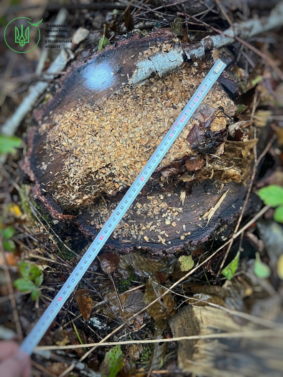 Під час огляду на території виявили 207 пнів зрубаних дерев порід береза та вільха. Сума завданих збитків довкіллю становить 1 768 000 гривень.