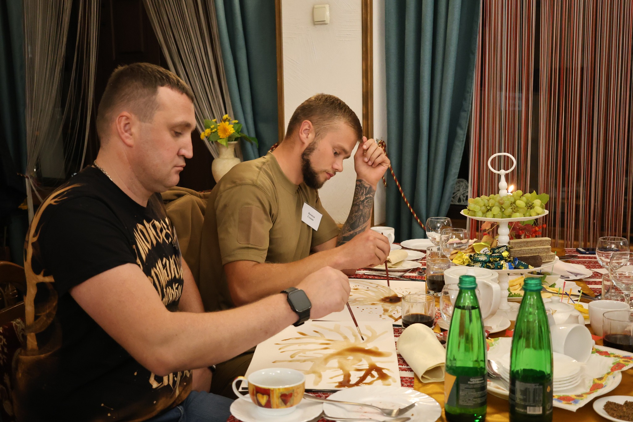 У неформальній атмосфері за кавою і розмовами проходила зустріч. Учасники ділились спогадами, поезією та піснями, презентували власні книги і пробували свої сили в творчому майстер-класі. Ветеран Костянтин Байчук зобразив кавою символічну веселку, адже у Бога немає інших рук, щоб обійняти і захистити нашу землю, дітей і військових.