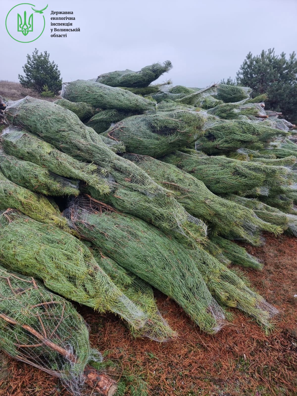 Державна екологічна інспекція та правоохоронні органи вживають заходів для встановлення осіб, причетних до незаконної заготівлі хвойних дерев.