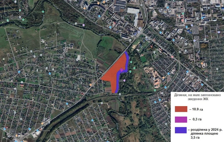 На території площею понад 13 гектарів хочуть збудувати п’ятнадцятиповерхівки, розраховані на 5,5 тисяч мешканців, а також облаштувати комерційні площі. Про наміри забудовника йдеться у повідомленні про планову діяльність, яка підлягає оцінці впливу на довкілля, оприлюдненому 6 квітня 2026 року на онлайн-платформі «Екосистема», - пише «».