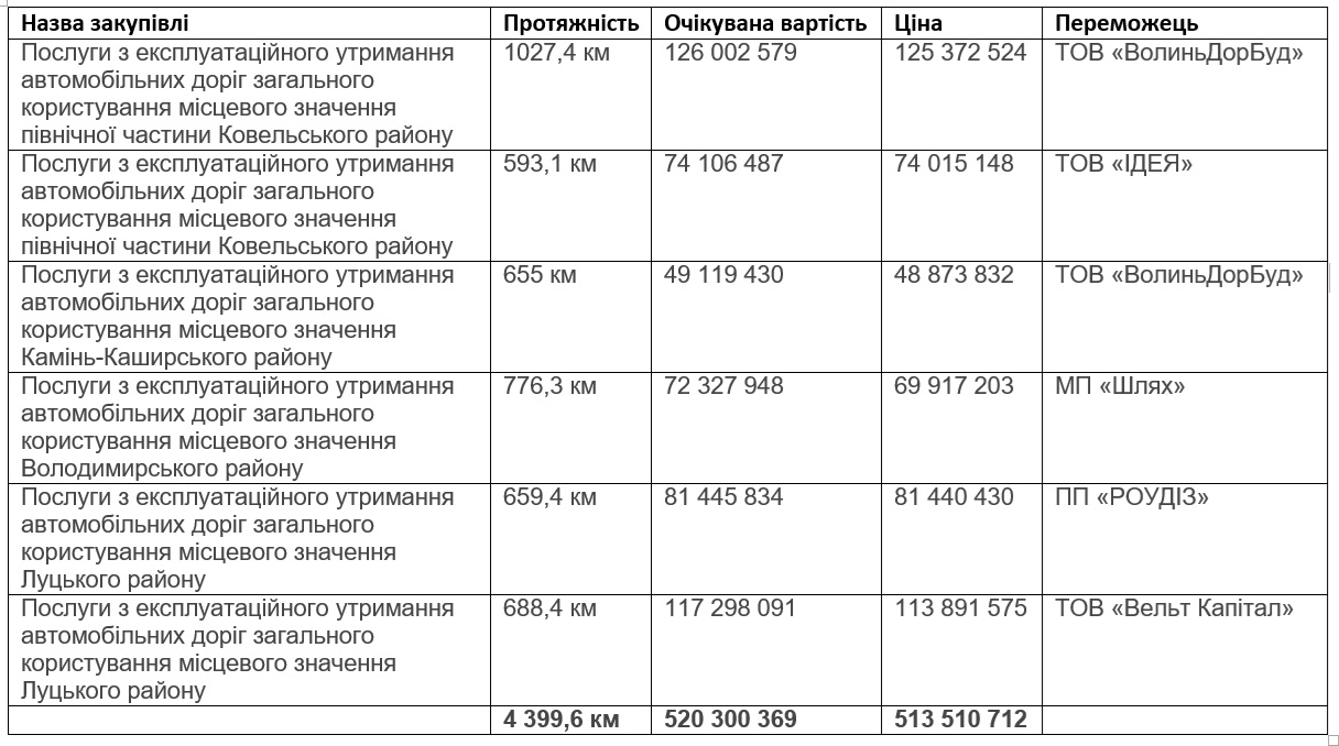 ЧИТАЙТЕ ТАКОЖ: Утримання доріг на Волині: підряд на 120 млн дістався єдиному учаснику
