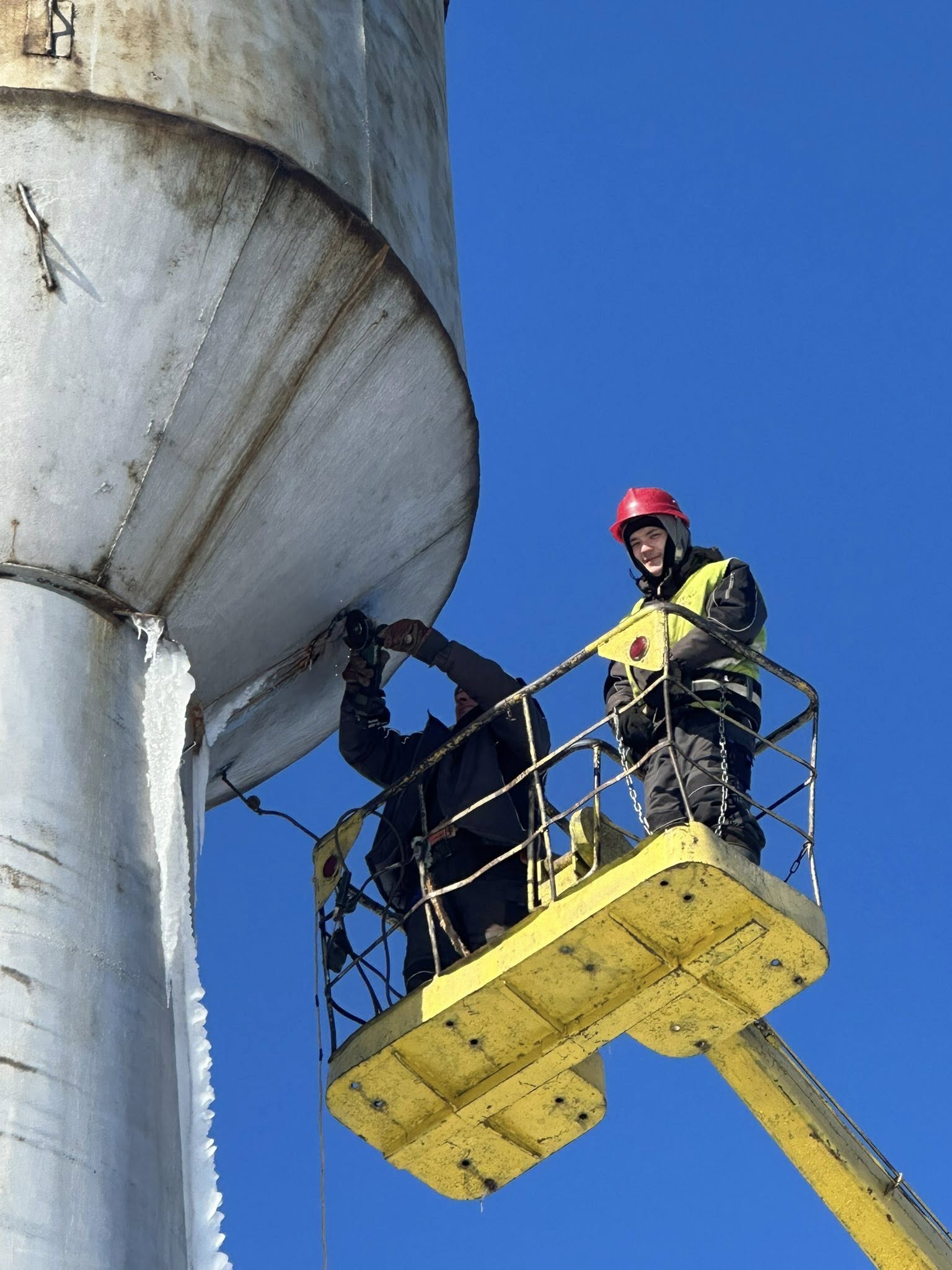 «Ремонт виконується на значній висоті та потребує особливої уважності, професійності й витримки. Такі роботи завжди пов’язані з додатковими ризиками, але наші фахівці щодня беруть на себе цю відповідальність, щоб система водопостачання працювала стабільно», - йдеться у повідомленні.