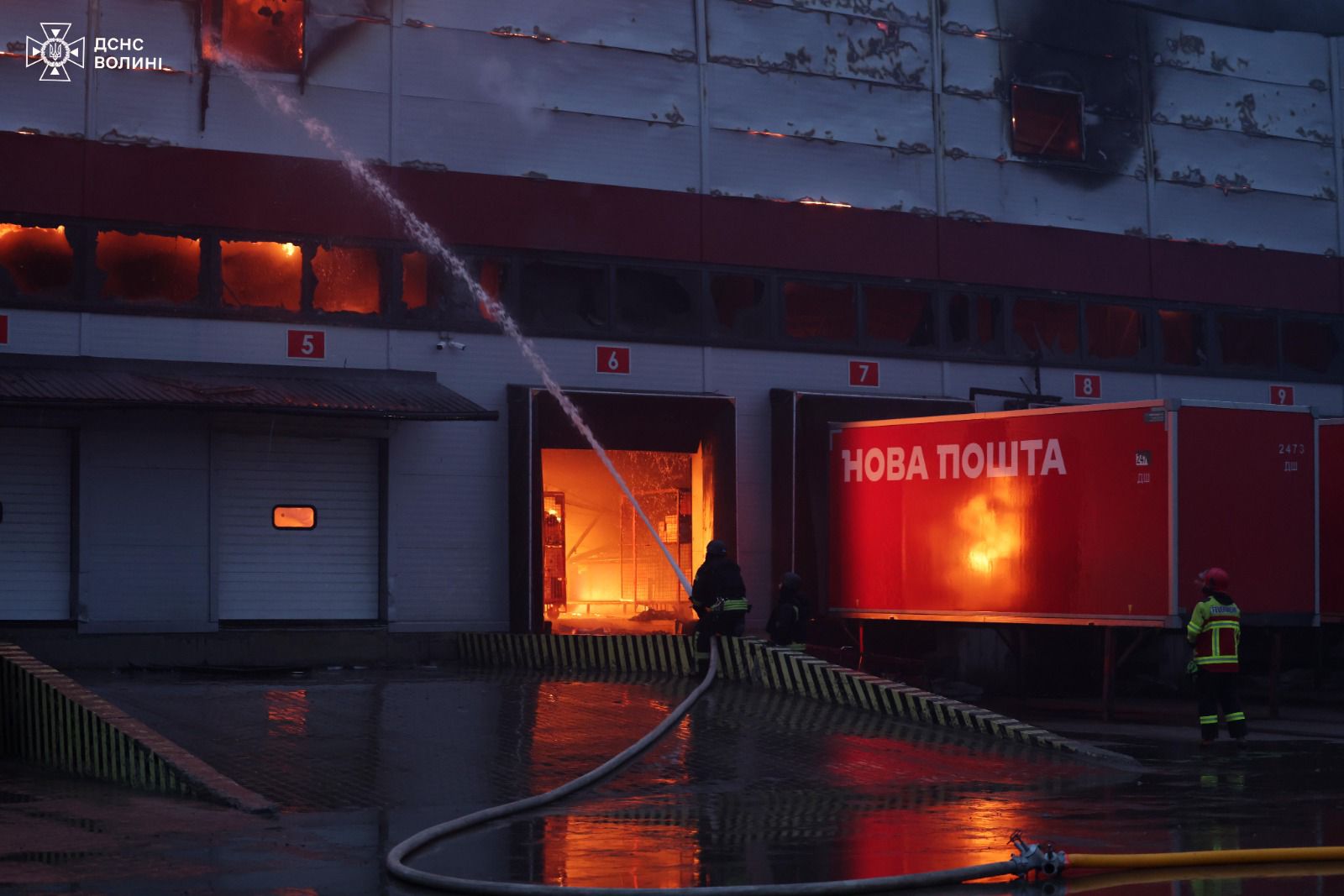 Зокрема, вогнеборці приборкали займання на території термінала «Нової пошти» на площі 3,6 тис. кв. м, не допустивши розповсюдження вогню на адмінбудівлю. Також ліквідували пожежу в складській будівлі, площею 21 тис. кв. м.