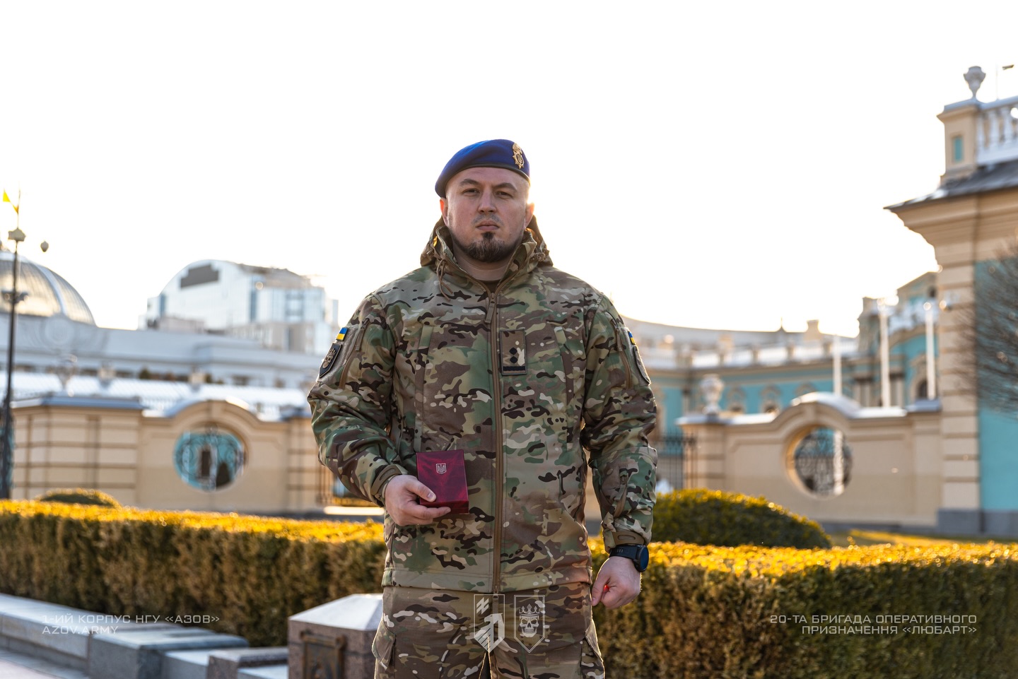 З нагоди Дня Національної гвардії України, який відзначали 26 березня, Володимир Зеленський вручив державну нагороду командиру 20 бригади «Любарт» 1 корпусу НГУ «Азов» підполковнику Вадиму Крикуну.